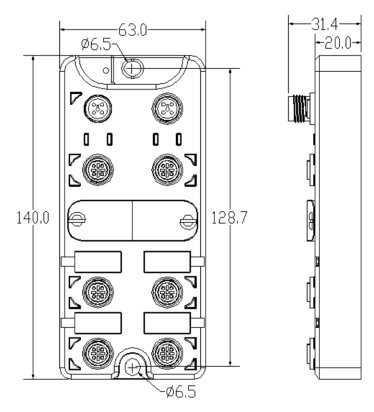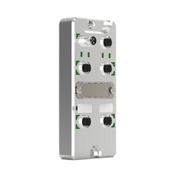 The IACM-PX series bus module is an RFID controller that offers standard industrial bus protocols, supporting ProfiNet, EtherCAT, EtherNet/IP, and MODBUS TCP protocols. It includes two M12 T-CODE power supply interfaces, two M12 D-CODE 4-PIN bus interfaces, and either 2 or 4 M12 A-CODE RFID reader and writer interfaces. The housing is made of a sturdy zinc alloy material, featuring wide connection range, strong communication capability, good environmental adaptability, and a high level of protection